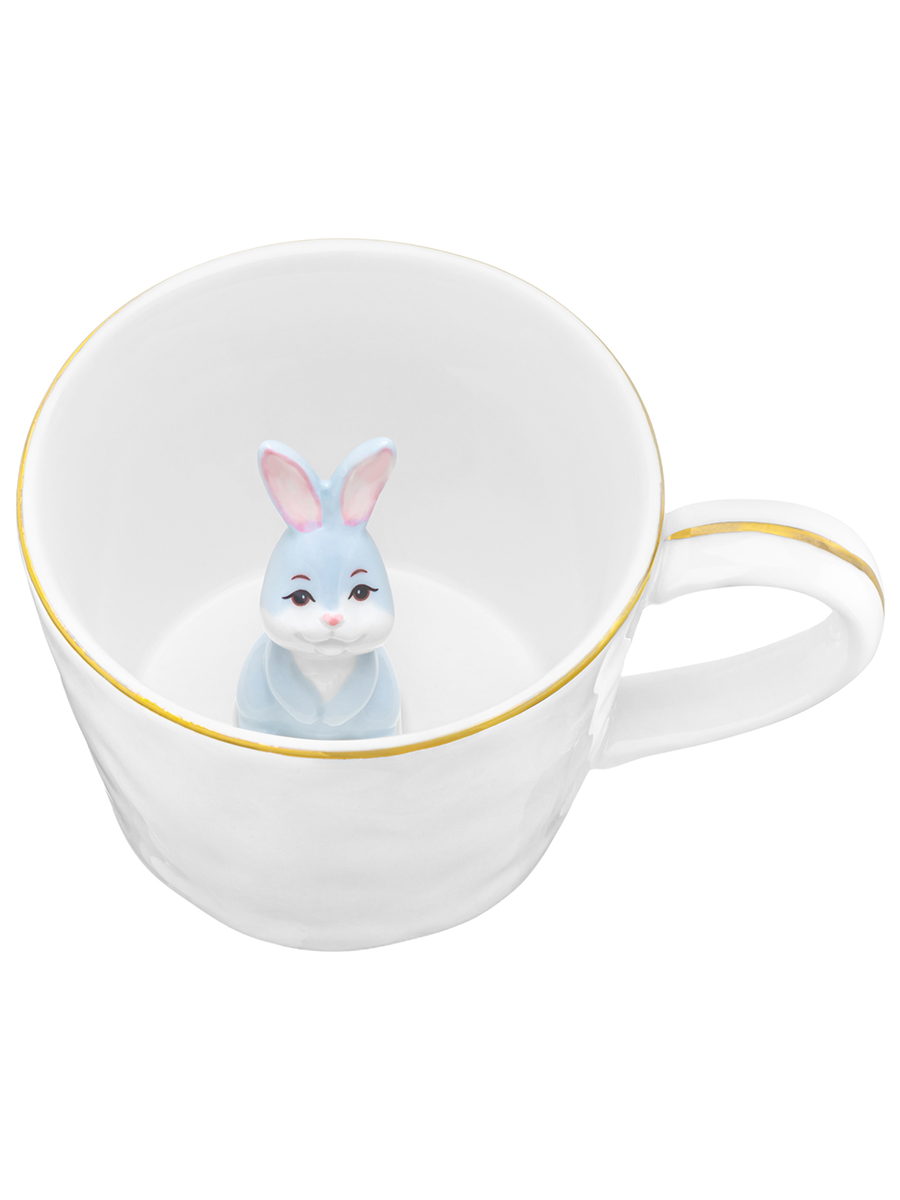 БЫЛО 701 руб! Кружка 300 мл 14*10*7,5 см "Любопытный кролик внутри кружки" белый с золотом, фарфор