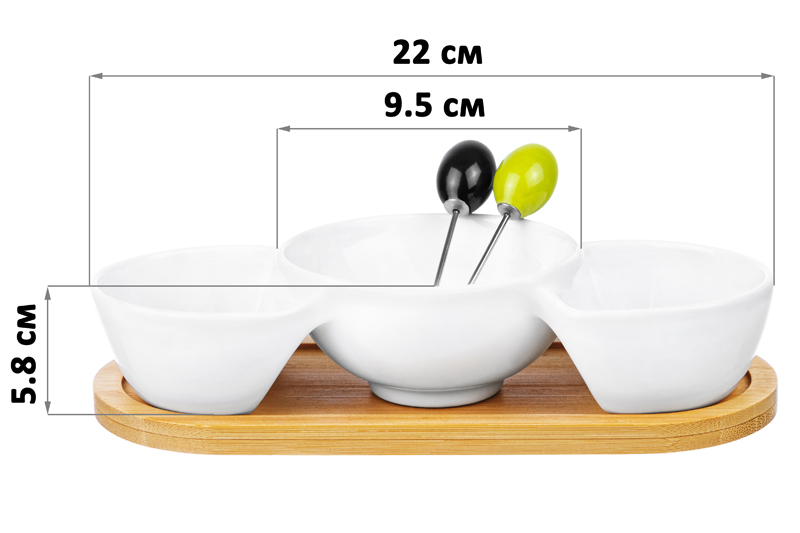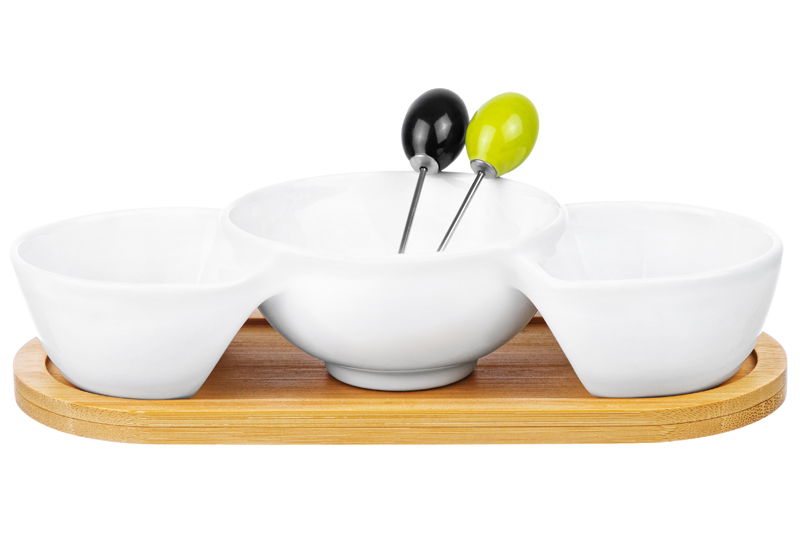 Менажница «Айсберг» выполнена из высококачественного фарфора с 3-мя секциями, 2-мя шпажками деревянной подставкой. Каждая секция достаточно вместительна, а подставка сконструирована для удобной переноски. Менажница прекрасно подходит для сервировки орешков, закусок, оливок, сладостей и благодаря необычному дизайну украсит любой стол. В серии фарфоровой посуды с использованием бамбука представлен широкий ассортимент товаров для сервировки стола, которые, несомненно, впишутся в любой интерьер благодаря лаконичному дизайну, натуральным материалам и высокой функциональности. Такому подарку будет рада любая хозяйка!