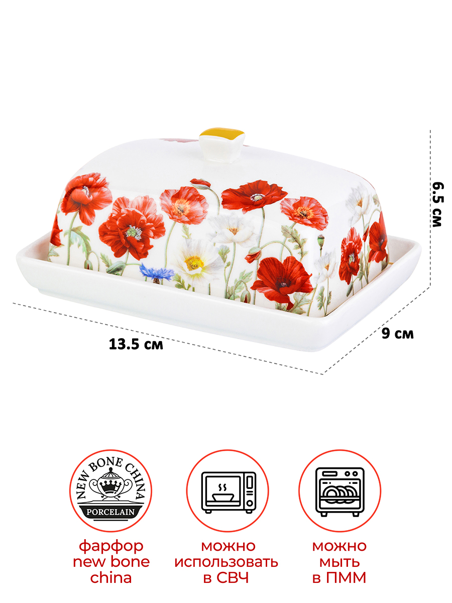 БЫЛО 708 руб! Масленка 13,5*9*6,5 см "Маки" NEW BONE CHINA