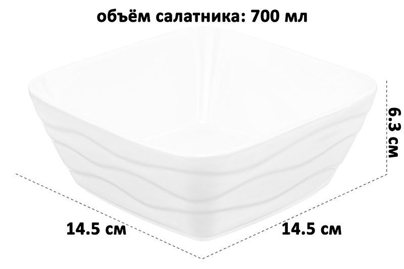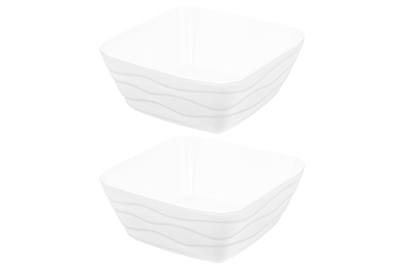 Набор 2 салатников из серии «Айсберг волны» от Elan Gallery станет идеальным решением для любителей здорового питания и красивой сервировки стола. Размер каждой ёмкости – 14,5х14,5х6,3 см, объём – 700 мл. Выполнены из высококачественного белого фарфора. Он не впитывает цвет продуктов и легко отмывается, благодаря чему надолго сохранит свою белизну. Поверхность изделий украшают рельефные узоры в виде поперечных волн. Большие и глубокие миски станут идеальным вариантом для приготовления и подачи салатов, а также свежих овощей и фруктов. Они также послужат для сервировки холодных закусок и гарниров. Кроме того, они послужат для сервировки холодных закусок и гарниров, разнообразных сладостей и десертов. Используйте их в качестве конфетниц для уютного чаепития. Изысканный дизайн с округлыми уголками позволит салатницам гармонично дополнить интерьер любой кухни и столовой. Не рекомендуется применять абразивные моющие средства. Подходят для использования в микроволновой печи и посудомоечной машине. Поставляются в красивой картонной коробке – благодаря ей вам не потребуется дополнительная подарочная упаковка. Фарфоровая сервировочная посуда послужит оригинальным подарком для хозяйки, ценящей не только практичность, но и привлекательность. Серия «Айсберг волны» от бренда Элан Галерея станет украшением любого кухонного инвентаря и позволит собрать сервиз в едином стиле!