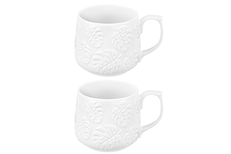 Набор 2 кружек Elan Gallery "Тропики" выполнен из фарфора. Размер каждого изделия 13,5х10х9 см, объём – 500 мл, размер дна – 7 см. Фарфоровые изделия украшены рельефным узором с тропическими листьями. Каждая кружечка подходит ценителям чая и кофе, которые любят пить из красивой и необычной посуды. Это отличный вариант для того, чтобы согреться горячим какао зимой и освежиться прохладным лимонадом летом. Интересный бокал украсит ваш стол своим стильным дизайном как на праздник, так и в будни. Пейте молоко или кефир и наслаждайтесь изящным рельефом! В офисе станет незаменимым предметом для чаепития или перерыва на капучино и латте. Не рекомендуется применять абразивные моющие средства. Можно использовать в микроволновой печи и мыть в посудомоечной машине. Поставляется в картонной коробке. Фарфоровая посуда станет чудесным подарком на любой праздник. Благодаря стильной коробочке вам не понадобится дополнительная подарочная упаковка. В ассортименте бренда Elan Gallery вы найдёте предметы декора и красивую посуду для приготовления и сервировки ваших любимых блюд.