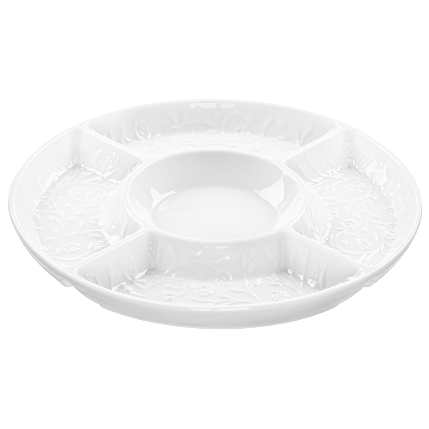 БЫЛО 718 руб!Менажница 26*26*2,5 см "Веточки-цветочки" цельная, 5 секций