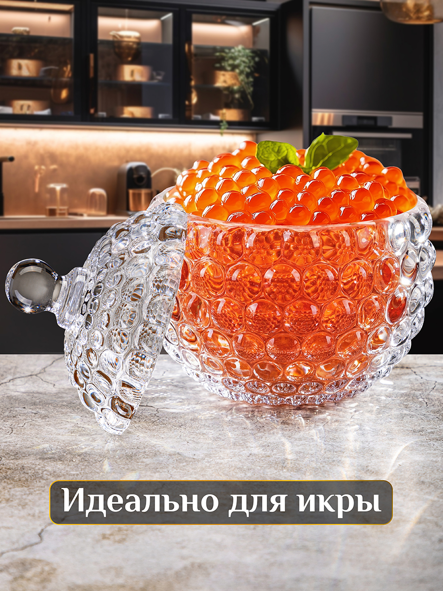 Горшочек для мёда “Пузырьки” с крышкой выполнен из стекла и украшен декоративным рельефным узором. Размер изделия – 11х11х13,5 см, объём – 300 мл. Высота без крышки – 7 см. Интересная прозрачная баночка подойдёт для хранения мёда, варенья, сахара и соли. Можно использовать её как ёмкость для чая, кофе и других сыпучих продуктов. Поможет отпраздновать Широкую Масленицу со вкусом! Масленица – это чудесный повод собраться за праздничным столом и насладиться тёплой атмосферой и традиционной русской кухней. В ассортименте бренда Elan Gallery вы найдёте предметы декора и красивую посуду для приготовления и сервировки масленичных блюд. Пусть Масленичная неделя принесет вам радость и множество вкусных моментов! Декоративная баночка круглой формы станет гармоничным дополнением при сервировке вашего стола как в будни, так и на праздник. Красивый дизайн позволит использовать её не только для хранения продуктов, но и для подачи на стол. Положите в неё конфеты или икру, чтобы удивить гостей изящной сервировкой. Стеклянную ёмкость с крышечкой можно использовать не только как сахарницу, икорницу или соусник, но и для специй и приправ. Это позволит держать под рукой всё необходимое во время приготовления и приёма пищи. На даче медовница будет незаменимой для семейного чаепития, а также подойдёт для подачи ягод. В качестве альтернативы красивую вазочку с крышкой можно использовать как шкатулку. Сложите в неё украшения и любые маленькие предметы. Не рекомендуется применять абразивные моющие средства. Можно мыть в посудомоечной машине. Нельзя использовать в микроволновой печи. Поставляется в стильной картонной упаковке. Красивая посуда – это отличный подарок на любой праздник. Медовый бочонок “Пузырьки” станет многофункциональным дополнением вашего кухонного инвентаря и настоящим украшением кухни!