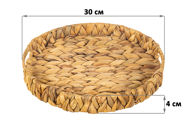 Плетеный поднос бренда El Casa изготовлен из высушенных стеблей и листьев водного гиацинта. Полный размер подноса - 30х30х4 см. Натуральный цвет подноса подчеркивает его органичность и гармонию с окружающей средой. Он добавит натуральность и теплоту вашему интерьеру. Данное изделие можно использовать для эстетичной подачи закусок, горячих блюд, напитков. Это отличный вариант для сервировки чая, вина, завтрака в постель, организации чаепитий и чайных церемоний на веранде. Плетеная корзинка идеальна для хранения одежды, канцелярии, косметики, предметов личной гигиены. Подходит для размещения на кухне, в прихожей, гостиной. Органайзер из водного гиацинта имеет прочное дно, высокие бортики и удобные отверстия под ручки, которые облегчают его переноску. Поднос не боится температурных перепадов, влажности, не выгорает на солнце. При уходе не рекомендуется применять абразивные моющие средства. Интерьерный плетеный поднос станет практичным подарком для родных и близких.