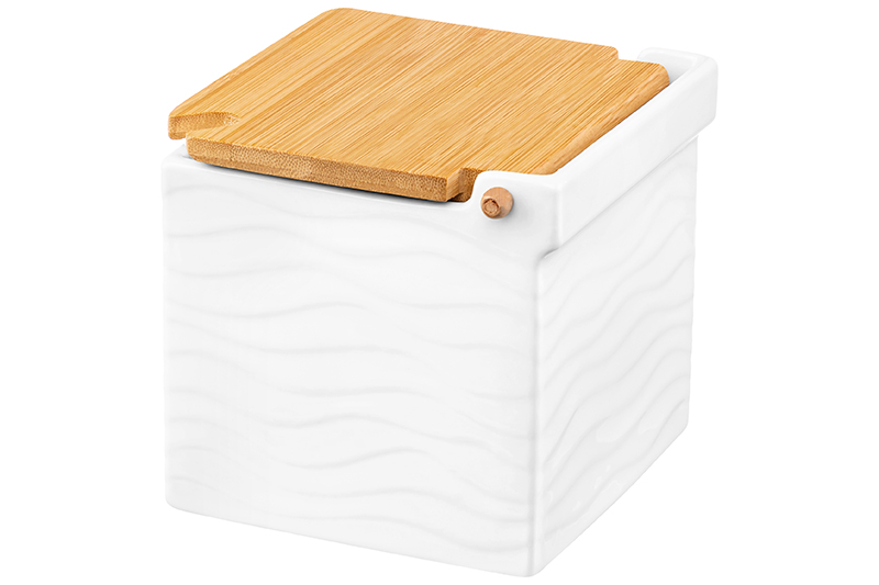 Банка для сыпучих продуктов Elan Gallery "Айсберг волны" объёмом 800 мл и размером 11,5*11*11,5 см выполнена из белого фарфора. Баночка имеет откидную крышку из натурального бамбука и ложку в комплекте. Фарфоровая ёмкость для сыпучих продуктов с ложечкой станет удобным и эстетичным дополнением вашей кухни. Банка позволит не просто хранить чай, сахар или соль на вашей кухне, но и станет элементом её декора. Подойдёт для разных сладостей, например, печенья или конфет. Баночка с откидной бамбуковой крышечкой украсит интерьер любой кухни или столовой. Не рекомендуется применять абразивные моющие средства. Не использовать в микроволновой печи и посудомоечной машине. Бамбуковые детали нельзя замачивать! Поставляется в стильной картонной упаковке. Банка для сыпучих продуктов станет украшением вашей кухни или приятным подарком для родных и близких!