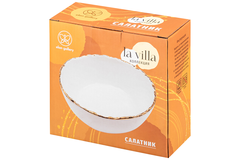 Салатник из серии «La villa» предназначен для подачи закусок. Размер изделия – 15,5х15,2х7 см, объём – 700 мл. Выполнен из высококачественного белого фарфора в стиле кантри и украшен золотым кантом с неровностями, придающим посуде особый шик. Фарфор не впитывает цвет продуктов и надолго сохранит свою роскошную белизну. Благодаря лаконичному, но изысканному дизайну посуда впишется в любой интерьер вашей кухни. Позволит элегантно сервировать оливье. За счёт высоких бортиков удобна для смешивания ингредиентов. Можно использовать в роли суповой тарелки – для супа, или роскошной подачи каши на завтрак. Подойдёт не только для салатов, но и для любых других закусок и угощений. Используйте глубокую сервировочную тарелку для красивой подачи овощей, фруктов или ягод. Заполните нарядную миску свежими фруктами на даче. Отлично послужит в качестве конфетницы – сложите в чашу любимые сладости и печенье. Декоративное фарфоровое блюдо станет незаменимым элементом эстетичной сервировки у вас дома как в будни, так и на праздник. Не рекомендуется применять абразивные моющие средства. Не подходит для использования в микроволновой печи. Можно использовать в посудомоечной машине. Поставляется в красивой картонной коробке – благодаря ей вам не потребуется дополнительная подарочная упаковка. Это идеальный подарок для хозяйки, ценящей не только практичность, но и стиль. Коллекция «La villa» – это приглашение в мир уюта и роскоши загородной жизни. Создайте роскошную сервировку и почувствуйте атмосферу праздника даже в будний день!
