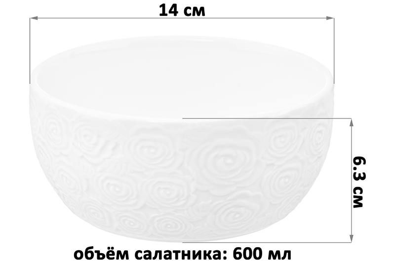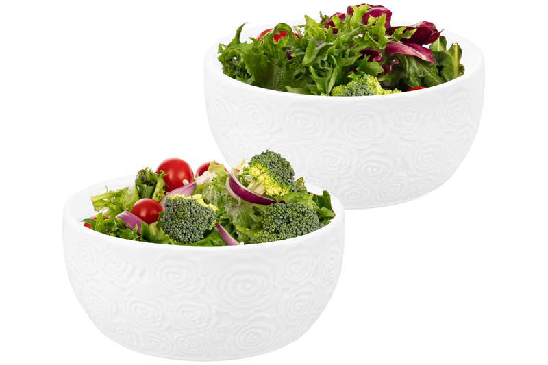Набор 2 салатников из серии «Розы» от Elan Gallery предназначен для эстетичной сервировки вашего стола. Размер каждого изделия – 14х14х6,3 см, объём – 600 мл. Выполнены из высококачественного белого фарфора. Он не впитывает цвет продуктов и легко отмывается, благодаря чему надолго сохраняет свою белизну. Поверхность изделий украшают рельефные узоры в виде пышных бутонов роз. Большие глубокие миски станут идеальным вариантом для любителей здорового питания. Используйте для приготовления и подачи салатов, а также овощей и фруктов. Кроме того, они послужат для сервировки холодных закусок и гарниров, разнообразных сладостей и десертов. Задействуйте в качестве конфетниц для организации уютного чаепития. Мягкая округлая форма и изысканный дизайн позволят салатницам гармонично дополнить интерьер любой кухни или столовой. Не рекомендуется применять абразивные моющие средства. Подходят для использования в посудомоечной машине и микроволновой печи. Поставляются в дизайнерской картонной коробке – благодаря ей вам не потребуется дополнительная подарочная упаковка. Фарфоровая сервировочная посуда будет оригинальным подарком для хозяйки, ценящей не только практичность, но и привлекательность. Серия «Розы» от бренда Элан Галерея станет украшением любого кухонного инвентаря и позволит собрать красивый сервиз в едином стиле!