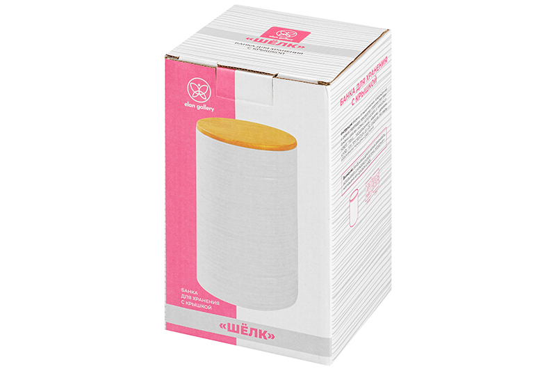БЫЛО 768 руб! Банка д/хранения 1,2 л 11,3*11,3*18 см "Шелк" с дер. крышк. с сил. упл.