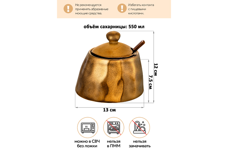 БЫЛО 770 руб! Сахарница 550 мл 13*13*12 см "Бронза", с бамбуковой ложкой