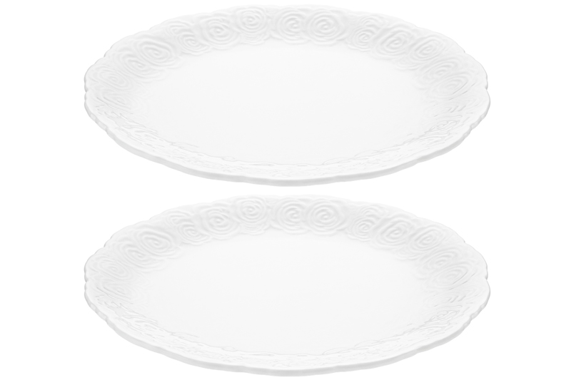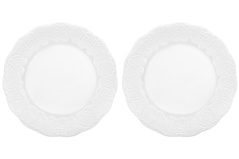 Набор 2 тарелок из серии «Розы» от Elan Gallery предназначен для эстетичной сервировки вашего стола. Размер каждого изделия – 20,5х20,5х1,8 см. Выполнены из высококачественного белого фарфора. Он не впитывает цвет продуктов и легко отмывается, благодаря чему надолго сохраняет свою белизну. Поверхность изделий украшают рельефные узоры в виде пышных бутонов роз. Сервировочный набор отлично подойдёт для подачи вторых блюд, закусок и салатов. Заполните их пастой и деликатесами из рыбы, красиво выложите нарезку из свежих овощей и фруктов, сыров и яиц. Положите роллы и суши для вкусного перекуса. Блюда помогут преподнести разнообразные десерты, слабости и выпечку. Разложите конфеты, разместите по кусочку торта на дружеском или семейном чаепитии. Элегантные тарелочки впишутся в интерьер любой кухни или столовой. Не рекомендуется применять абразивные моющие средства. Подходят для использования в посудомоечной машине и микроволновой печи. Поставляются в дизайнерской картонной коробке – благодаря ей вам не потребуется дополнительная подарочная упаковка. Фарфоровая сервировочная посуда будет оригинальным подарком для хозяйки, ценящей не только практичность, но и привлекательность. Серия «Розы» от бренда Элан Галерея станет украшением любого кухонного инвентаря и позволит собрать красивый сервиз в едином стиле!