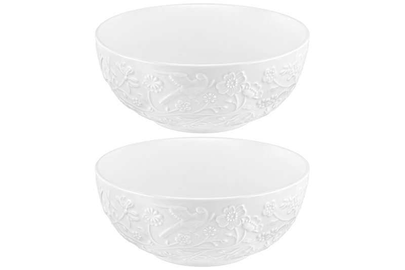 Набор 2 салатников из серии «Райский сад» от Elan Gallery предназначен для эстетичной сервировки вашего стола. Размер каждого изделия – 15х15х6,5 см, объём – 600 мл. Выполнены из высококачественного белого фарфора. Он не впитывает цвет продуктов и легко отмывается, благодаря чему надолго сохраняет свою белизну. Поверхность изделий овивают тонкие лиственные и цветочные веточки, возле которых порхают выразительные птицы. Большие глубокие миски станут идеальными вариантами для любителей здорового питания. Используйте для приготовления и подачи салатов, а также овощей и фруктов. Кроме того, они послужат для сервировки холодных закусок и гарниров, разнообразных сладостей и десертов. Задействуйте в качестве конфетниц для организации уютного чаепития. Мягкая округлая форма и изысканный дизайн позволят салатницам гармонично дополнить интерьер любой кухни или столовой. Не рекомендуется применять абразивные моющие средства. Подходят для использования в посудомоечной машине и микроволновой печи. Поставляются в дизайнерской картонной коробке – благодаря ей вам не потребуется дополнительная подарочная упаковка. Фарфоровая сервировочная посуда будет оригинальным подарком для хозяйки, ценящей не только практичность, но и привлекательность. Серия «Райский сад» от бренда Элан Галерея станет украшением любого кухонного инвентаря и позволит собрать красивый сервиз в едином стиле!