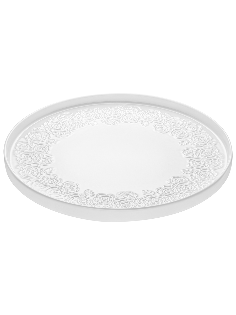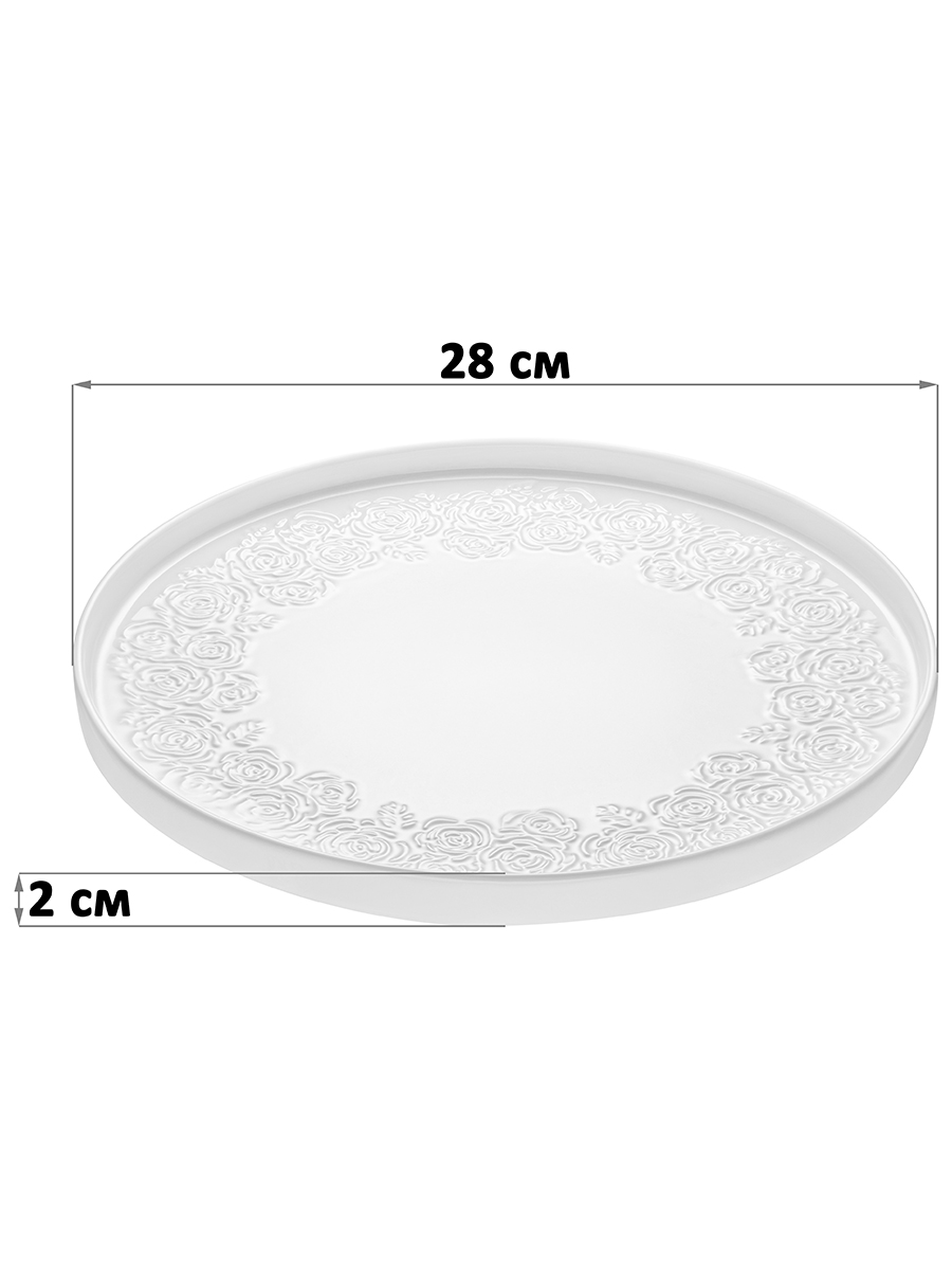 Блюдо-поднос от бренда Elan Gallery из серии "Розы" предназначено для подачи разнообразных угощений. Размер изделия – 28х28х2 см. Внутренний диаметр круглого блюда – 26 см, внутренняя высота бортика – 1,3 см. Выполнено из белого фарфора. Материал не впитывает цвет продуктов и легко отмывается, благодаря чему надолго сохранит свою белизну. По окружности поверхность изделия украшена рельефным узором в виде цветов. Благодаря лаконичному, но изысканному дизайну посуда впишется в любой интерьер. Подойдёт для подачи сыра и колбасы, а также рыбных и мясных деликатесов. Красиво подайте себе на завтрак бутерброды с хлебом и сырной нарезкой. Идеально подойдёт для сервировки закусок – суши, роллов и канапе, а также хлеба, свежих фруктов и овощей. Наполните его десертами и сладостями, например, конфетами, печеньем, кусочками торта и пирога. При желании можно использовать в качестве декоративной подставки. Блюдо с бортиком станет незаменимым элементом сервировки как в будни, так и на праздник. Не рекомендуется применять абразивные моющие средства. Беречь от механических повреждений и резких перепадов температур. Можно использовать в микроволновой печи и посудомоечной машине. Поставляется в красивой картонной коробке с логотипом бренда – благодаря ей вам не потребуется дополнительная подарочная упаковка. Станет полезным подарком на любой праздник и всегда пригодится в быту. Посуда из серии "Розы" преобразит вашу кухню и позволит собрать сервиз в едином стиле!