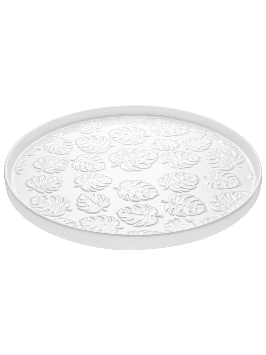 Блюдо-поднос от бренда Elan Gallery из серии "Тропики" предназначено для подачи разнообразных угощений. Размер изделия – 28х28х2 см. Внутренний диаметр круглого блюда – 26 см, внутренняя высота бортика – 1,3 см. Выполнено из белого фарфора. Материал не впитывает цвет продуктов и легко отмывается, благодаря чему надолго сохранит свою белизну. Поверхность изделия украшена рельефным узором в виде тропических листьев. Благодаря лаконичному, но изысканному дизайну посуда впишется в любой интерьер. Подойдёт для подачи сыра и колбасы, а также рыбных и мясных деликатесов. Красиво подайте себе на завтрак бутерброды с хлебом и сырной нарезкой. Идеально подойдёт для сервировки закусок – суши, роллов и канапе, а также хлеба, свежих фруктов и овощей. Наполните его десертами и сладостями, например, конфетами, печеньем, кусочками торта и пирога. При желании можно использовать в качестве декоративной подставки. Блюдо с бортиком станет незаменимым элементом сервировки как в будни, так и на праздник. Не рекомендуется применять абразивные моющие средства. Беречь от механических повреждений и резких перепадов температур. Можно использовать в микроволновой печи и посудомоечной машине. Поставляется в красивой картонной коробке с логотипом бренда – благодаря ей вам не потребуется дополнительная подарочная упаковка. Станет полезным подарком на любой праздник и всегда пригодится в быту. Посуда из серии "Тропики" преобразит вашу кухню и позволит собрать сервиз в едином стиле!