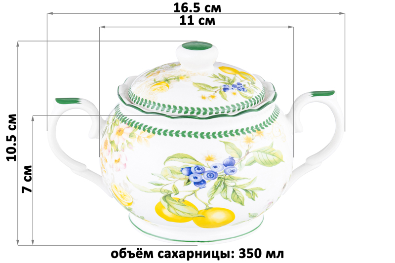БЫЛО 796 руб! Сахарница 350 мл 16,5*11*10,5 см "Лимоны" NEW BONE CHINA