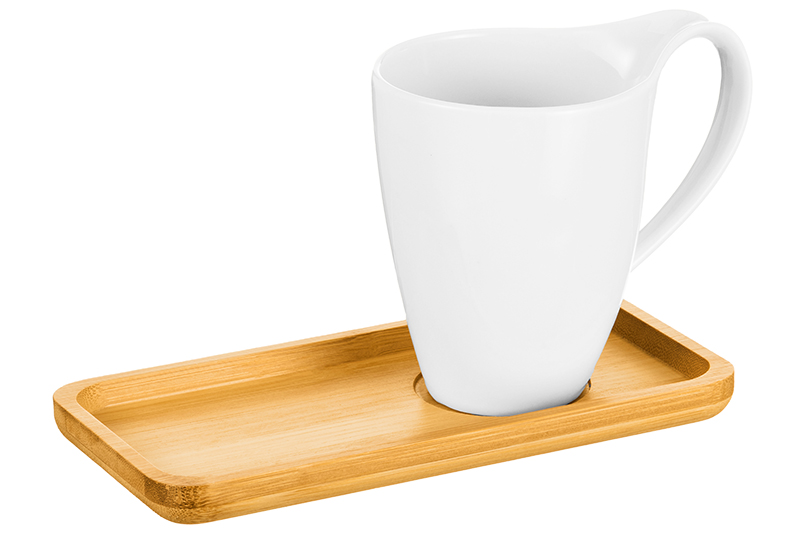 БЫЛО 800 руб! Чашка 400 мл 13,5*9*11,5 см "Айсберг" с бамбуковым блюдцем для десерта 21*10,5*1,5 см