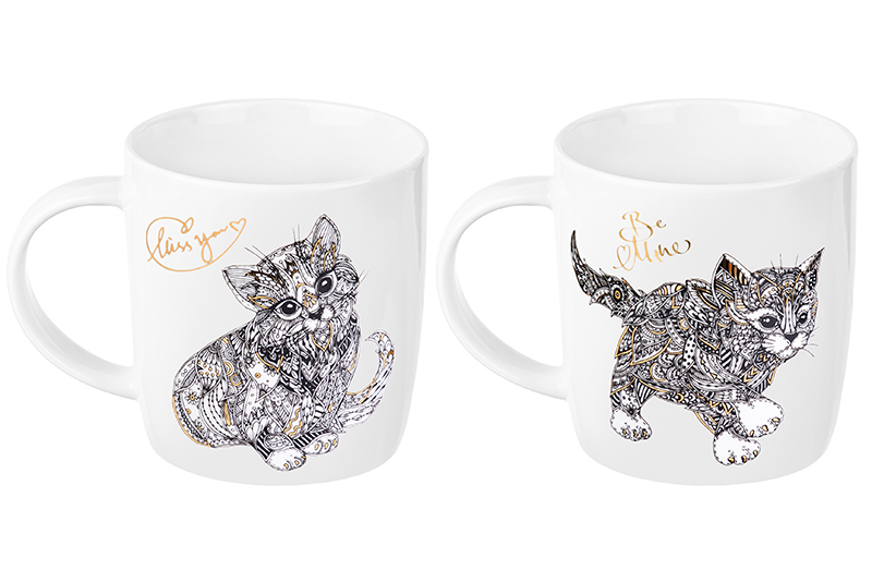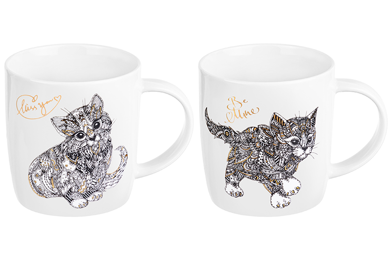 БЫЛО 806 руб! Набор 2 кружек 380 мл 12,5*9*9,3 см "Котята" NEW BONE CHINA