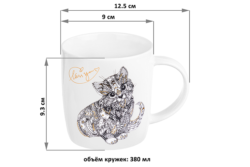 Белые кружки с принтом и изящным орнаментом, добавляет волшебства вашему чаю, кофе или даже воде. Кружки также украшает золотой декор рисунка, который придает им особый шарм и блеск. Новаторство и элегантность объединены в этой дизайнерской фарфоровой чашке. Каждая кружка украшена уникальным чёрно-золотым рисунком и выполнена из прочного лёгкого фарфора. Легкий и удобный материал New Bone China обеспечивает изысканность и прочность изделия. Чашки не рекомендуем мыть в посудомоечной машине или использовать в микроволновой печи. Набор 2 кружек Elan Gallery "Котята" вдохновлен магией природы и ее обитателями. Превратите кофейный или чайный час в настоящий праздник, наслаждаясь напитками в кругу друзей или семьи, в окружении прекрасного узора с милыми котятами. Котята символизируют игривость, независимость и нежность. Таким образом, эти кружки станут идеальным подарком для близких или даже для себя. Большая вместимость кружек позволит насладиться вашими любимыми напитками: чаем, кофе, глинтвейном, капучино, латте и другими. Можно использовать эти кружки как заварочные. Каждая кружка изготовлена с душой, чтобы порадовать вас и ваших близких. Приобретение набора из 2-х кружек Elan Gallery "Котята" станет отличным вложением и прекрасным выбором для подарка маме, сестре, подруге. Это возможность подарить близким не просто посуду, а настоящую частичку вашей души. Наслаждайтесь чаем или кофе в компании с котятами, создавайте моменты радости и счастья.