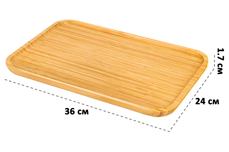 БЫЛО 807 руб! Поднос сервировочный 36*24*1,7 см, прямоугольный, бамбук
