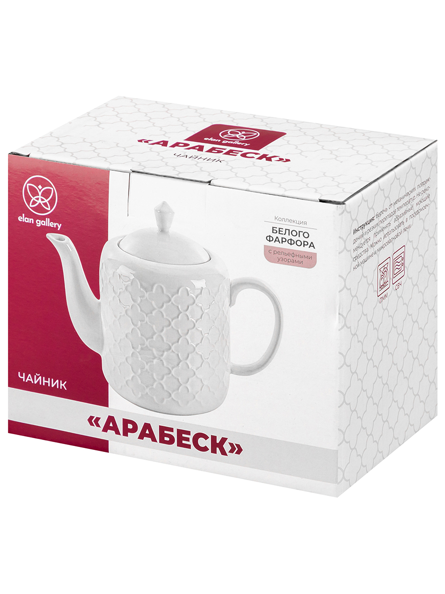 Чайник из серии «Арабеск» от Elan Gallery предназначен для эстетичной сервировки вашего стола. Размер ёмкости – 19,5х10,5х15,5 см, объём – 750 мл. Выполнен из высококачественного белого фарфора. Он не впитывает цвет напитков и легко отмывается, благодаря чему надолго сохранит свою белизну. Поверхность изделия украшает рельефный орнамент. Декоративный чайничек подходит для ежедневного заваривания и станет незаменимой составляющей любого чаепития. Фильтр в виде маленьких отверстий в стенке позволит наслаждаться ароматной заваркой без попадания мелких чаинок. Крышка прочно держится на заварнике благодаря язычку. Вместительный заварочник позволит наполнить множество кружек за раз, практично дополняя большое застолье! Подайте его к столу, чтобы насладиться чаем с конфетами, шоколадом и другими сладостями. Он привнесёт эстетику в организацию чайной церемонии. Не рекомендуется применять абразивные моющие средства. Подходит для использования в посудомоечной машине и микроволновой печи. Поставляется в дизайнерской картонной коробке – благодаря ей вам не потребуется дополнительная подарочная упаковка. Фарфоровая сервировочная посуда будет оригинальным подарком для хозяйки, ценящей не только практичность, но и привлекательность. Серия «Арабеск» от бренда Элан Галерея станет украшением любого кухонного инвентаря и позволит собрать красивый сервиз в едином стиле!