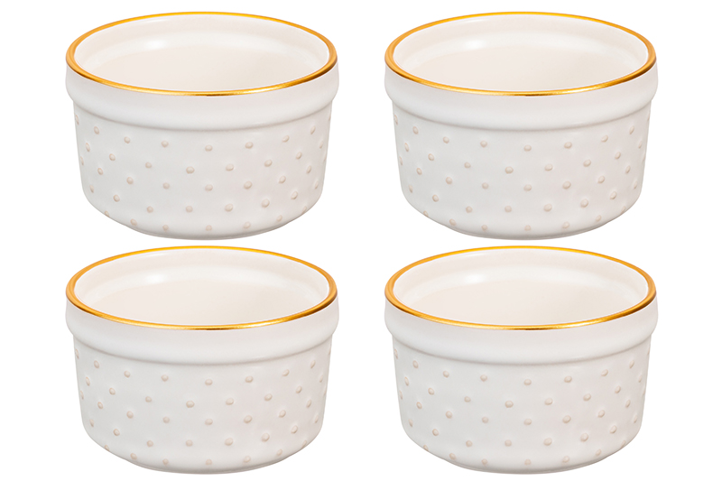 БЫЛО 817 руб! Набор 4 форм для запекания "Бисер" 200 мл 8,7*8,7*5,6 см, молочно - белый, золотая кайма, керамика