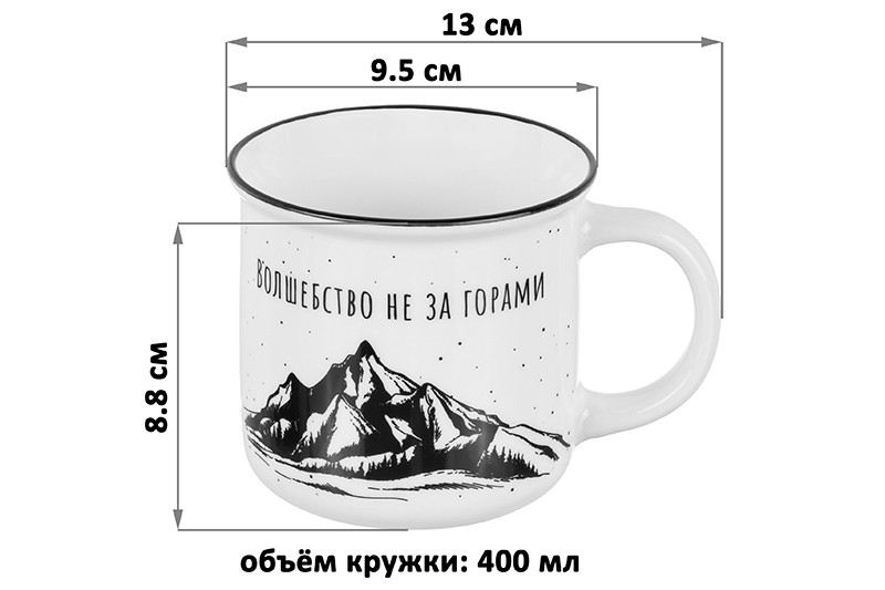 Набор 2 кружек "Волшебство не за горами" от Elan Gallery предназначен для эстетичной сервировки вашего стола. Размер каждого изделия – 13х9,5х8,8 см, объём – 400 мл. Выполнены из высококачественного фарфора. Он не впитывает цвет продуктов и легко отмывается, благодаря чему надолго сохранит свой цвет. Изделия украшены контрастным рисунком в виде скалистых гор и лаконичной надписью. Кофейные кружки помогут провести множество приятных завтраков с капучино и латте, а также уютные чайные вечера с конфетами, вафлями, другими десертами и сладостями. Подойдут ценителям чая и кофе, которые любят пить из красивой и необычной посуды. Согрейтесь зимой любимым горячим напитком: какао с маршмэллоу, ягодным чаем, горячим шоколадом. Летом освежитесь домашним лимонадом или морсом. Декоративные изделия помогут добавить эстетики любому чаепитию. Не рекомендуется применять абразивные моющие средства. Подходят для использования в микроволновой печи и посудомоечной машине. Поставляются в дизайнерской картонной коробке – благодаря ей вам не потребуется дополнительная подарочная упаковка. Фарфоровая сервировочная посуда послужит оригинальным подарком для хозяйки, ценящей не только практичность, но и привлекательность. В коллекции бренда Элан Галерея вы найдёте множество красивой посуды, сувениров и товаров для дома, которые помогут создать комфорт и уют в любом пространстве!