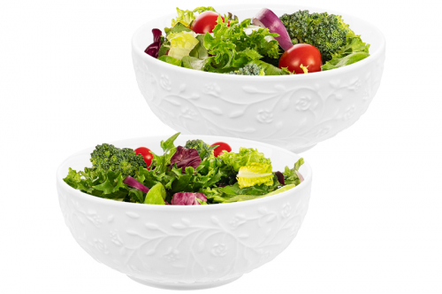 Набор 2 салатников из серии «Веточки-цветочки» от Elan Gallery предназначен для эстетичной сервировки вашего стола. Размер каждого изделия – 15х15х6,5 см, объём – 600 мл. Выполнены из высококачественного белого фарфора. Он не впитывает цвет продуктов и легко отмывается, благодаря чему надолго сохраняет свою белизну. Поверхность изделий украшают рельефные узоры в виде лиственных веточек с аккуратными цветочными бутончиками. Глубокие миски станут идеальным вариантом для любителей здорового питания. Используйте для приготовления и подачи салатов, а также овощей и фруктов. Кроме того, они послужат для сервировки холодных закусок и гарниров, разнообразных сладостей и десертов. Задействуйте в качестве конфетниц для организации уютного чаепития. Мягкая округлая форма и изысканный дизайн позволят салатницам гармонично дополнить интерьер любой кухни или столовой. Не рекомендуется применять абразивные моющие средства. Подходят для использования в посудомоечной машине и микроволновой печи. Поставляются в дизайнерской картонной коробке – благодаря ей вам не потребуется дополнительная подарочная упаковка. Фарфоровая сервировочная посуда будет оригинальным подарком для хозяйки, ценящей не только практичность, но и привлекательность. Серия «Веточки-цветочки» от бренда Элан Галерея станет украшением любого кухонного инвентаря и позволит собрать красивый сервиз в едином стиле!