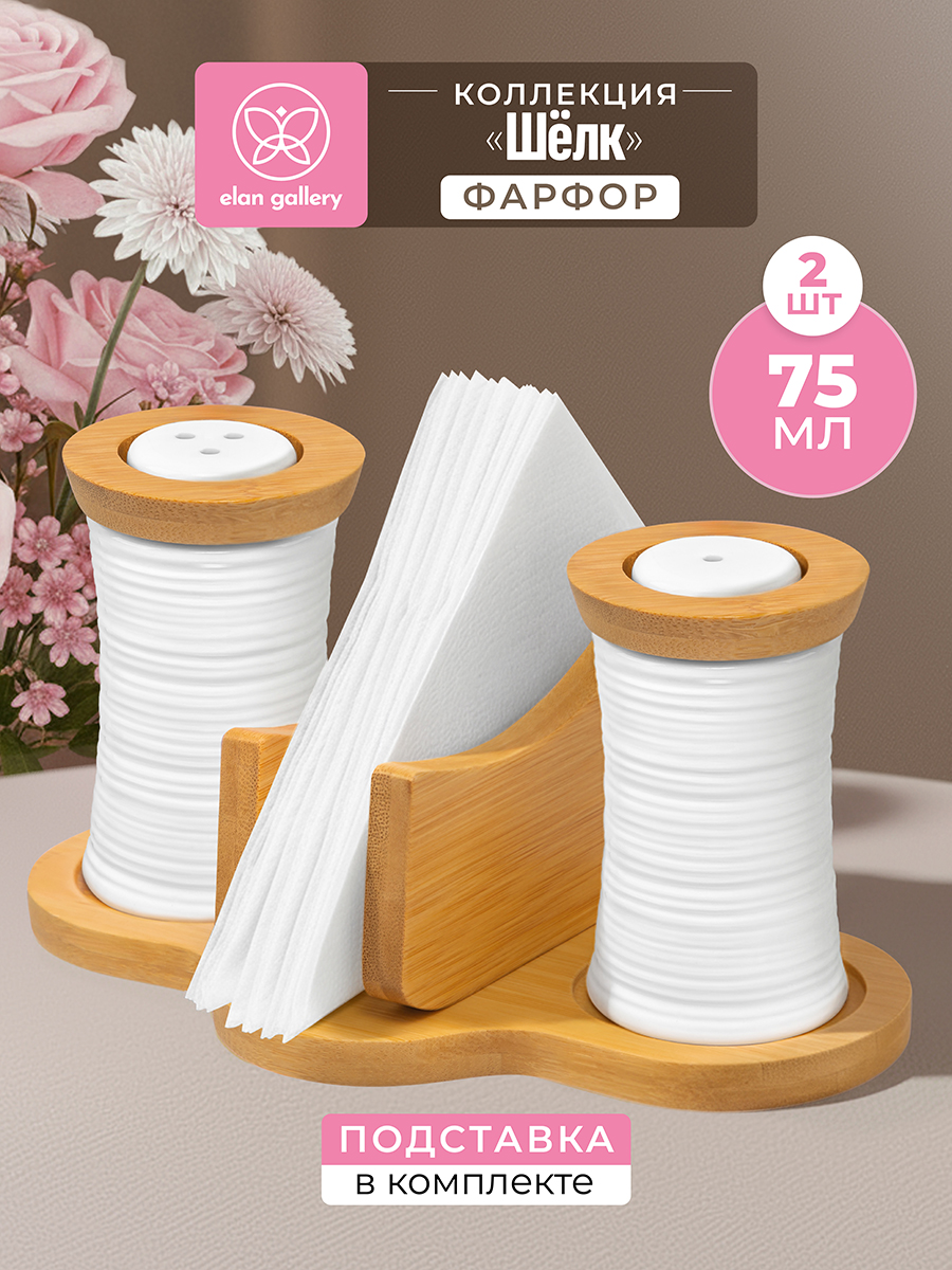 БЫЛО 827 руб! Набор для специй 2 пр. 18,3*11,5*9,5 см "Шелк" с подставкой для салфеток на дерев. подставке