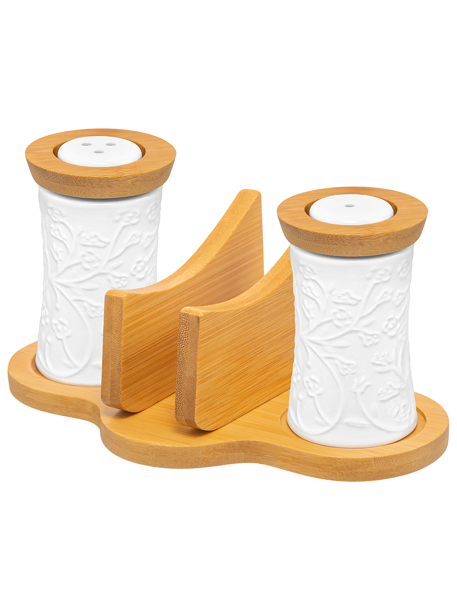 БЫЛО 827 руб! Набор для специй 2 пр. 18,3*11,5*9,5 см "Веточки-цветочки" с подставкой для салфеток на дерев.подст.