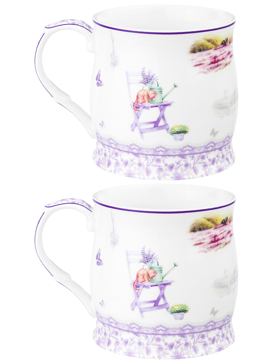 БЫЛО 833 руб! Набор 2 кружек 300 мл 11,5*8,5*8,5 см "Лаванда" NEW BONE CHINA, фарфор