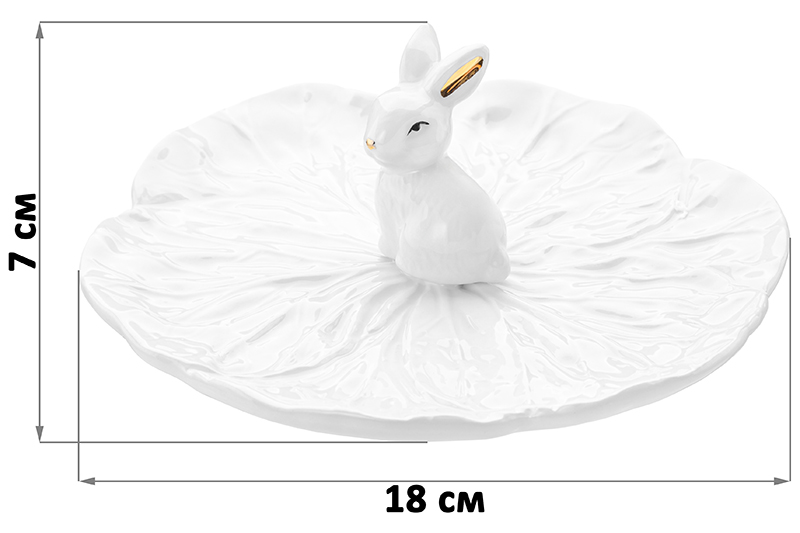 Сервировочное круглое блюдо Elan Gallery "Кролик" размером 18х18х7 см станет украшением интерьера вашей кухни, столовой или комнаты. Декоративная тарелочка выполнена из керамики и украшена фигуркой белого зайчика с золотыми ушками. Поверхность тарелки украшена рельефом, имитирующим листья капусты. Светлая Пасха – один из главных праздников весны! Мы разработали коллекцию сезонных товаров для дома, которые помогут создать радостную и уютную атмосферу в квартире или на даче. Пасхальный декор преобразит домашний интерьер и поможет встретить праздник в кругу любимых. Тарелку можно использовать для подачи закусок или сладостей. Поставьте блюдо для сервировки на стол, чтобы симпатичный зверёк каждый день радовал вашу семью. На празднике гости точно оценят красивую подачу сыра, колбасы, мясной нарезки, нарезанных овощей или фруктов! Удобна для сервировки канапе, солений или рыбы. Не рекомендуется применять абразивные моющие средства. Нельзя использовать в микроволновой печи и посудомоечной машине. Поставляется в стильной картонной упаковке. Красивая посуда станет отличным подарком на любой праздник. Сервировочное блюдо украсит ваш дом и поможет создать в нём атмосферу тепла и уюта. В коллекции бренда Elan Gallery вы найдёте множество как ярких, так и нежных декоративных украшений – каждый обязательно подберёт сувенир на свой вкус. Они станут чудесным подарком для родных, близких и коллег. Наполните пространство вокруг себя радостью и весенним настроением!