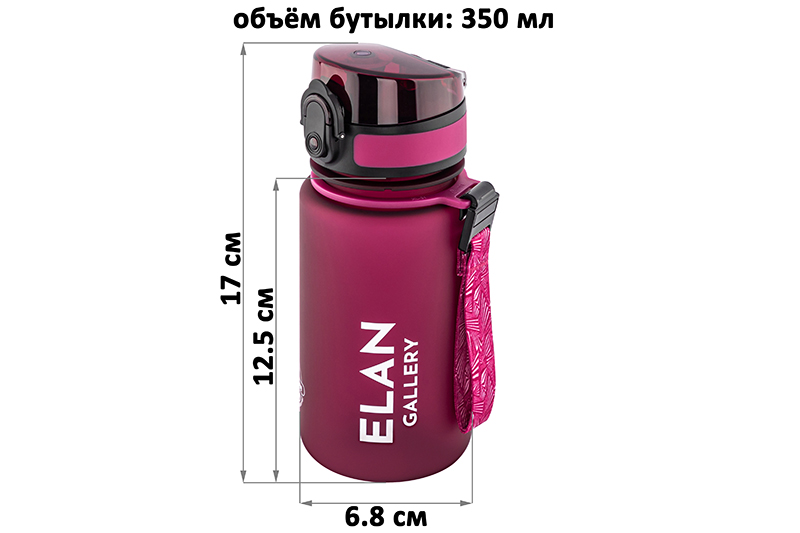 Бутылка для воды «Style Matte» от Elan Gallery – это практичное и стильное решение для ценителей активного образа жизни. Размер ёмкости – 6,8х6,8х17 см. Высота до крышки – 12,5 см. Объём – 350 мл. Изделие выполнено из тритана – прочного, безопасного материала, не содержащего бисфенол А. Этот пластик не впитывает запахи и не влияет на вкус напитков. Бутылочка подходит как для холодной, так и для горячей жидкости. Освежитесь любимыми летними напитками в жару или согрейтесь ароматным чаем зимой! Матовое покрытие обеспечивает комфортное использование на прогулке, в офисе и на тренировке в зале. Надёжная крышка с герметичным клапаном препятствует проливанию, а встроенное ситечко позволит заваривать напитки с травами и фруктами. С удобным ремешком бутылку можно закрепить на рюкзаке или запястье – это позволяет брать её в путешествия, поездку на велосипеде или автомобиле. Многоразовая дорожная бутылка подходит как для туризма, так и для пикника на природе. Удобная форма делает её не только туристическим, но и спортивным инвентарём. Пластиковая ёмкость для питья – прекрасный вариант для занятий фитнесом, йогой или бегом в спортзале или на свежем воздухе. Она также дополнит занятия велоспортом в качестве велосипедного аксессуара. Это надёжный помощник спортсменам во время игры в футбол или волейбол, занятий гимнастикой и танцами. Подходит как для взрослых, так и для школьников – её можно взять в школу и на занятия физкультурой. Благодаря универсальному дизайну и цвету бургундия она подойдёт как девочкам, так и мальчикам в качестве школьного аксессуара. Функциональная бутылка в дизайнерской картонной упаковке – это готовый подарок для женщин и мужчин. Не подходит для микроволновой печи, посудомоечной машины и стерилизатора. В коллекции бренда Элан Галерея представлена разнообразная посуда и товары для дома на любой вкус. Спортивные аксессуары из серии «Style Matte» помогут следить за водным балансом, где бы вы ни находились!
