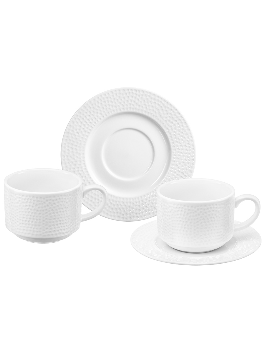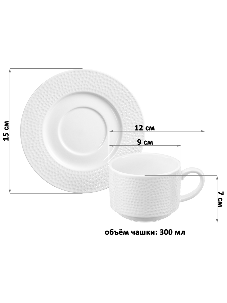 Набор 2 чайных пар Elan Gallery "Белый коралл" выполнен из фарфора. Объём каждой чашки – 300 мл, размер – 12х9х7 см. Размер каждого блюдца – 15х15х2,5 см. Коллекция "Белый коралл" украшена рельефом, вдохновлённым природной текстурой морских кораллов. С ней вы словно переноситесь на солнечное побережье, где можно насладиться свежим морским воздухом, тёплым песком и ощущением лёгкости. Чашки с блюдцами для десерта украсят ваш стол своим эстетичным дизайном как на праздник, так и в будни. Используйте блюдце как подставку для чашки, чтобы порадовать гостей изящной сервировкой. Положите на десертную тарелку кусочек торта, домашнего пирога или пирожное. Небольшая тарелочка подойдёт не только для десерта, но и закусок: сырной нарезки, сырокопчёной колбасы или свежих овощей и зелени. В отличие от керамики фарфор не впитывает цвет напитков, легко отмывается, поэтому сохраняет свою белизну долгое время. Беречь от резких перепадов температур и механических повреждений. Не рекомендуется применять абразивные моющие средства. Комплект можно использовать в микроволновой печи и посудомоечной машине. Поставляется в красивой картонной коробке, поэтому вам не понадобится дополнительная подарочная упаковка, если вы решите преподнести сюрприз. Изящный набор на 2 персоны станет приятным подарком на любой праздник и добавит эстетики каждому чаепитию. В коллекции бренда Элан Галерея представлено много стильных товаров для дома, в том числе всё для создания красоты и уюта на кухне. Коллекция "Белый коралл" от Elan Gallery подарит вам атмосферу уюта, тепла и безмятежности в любое время года!