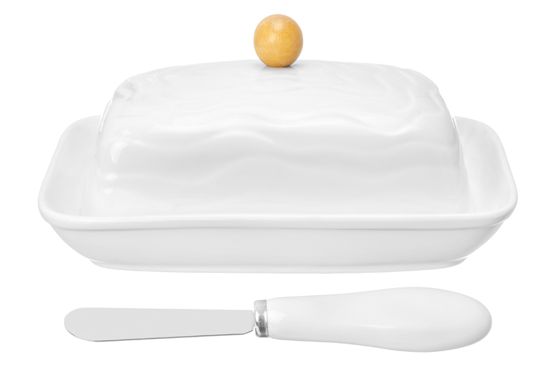 Маслёнка из серии «Айсберг волны» от Elan Gallery предназначена для хранения сливочного масла и других продуктов. Размер изделия – 16х12,2х8,3 см. Высота блюда без крышки – 2 см. Представляет собой фигурное блюдце и крышку-купол с удобной круглой ручкой. Выполнена из высококачественного белого фарфора. Он не впитывает цвет продуктов и легко отмывается, благодаря чему надолго сохраняет свою белизну. Поверхность изделия украшают рельефные узоры в виде поперечных волн. Ручка на крышке выполнена из натурального бамбука, нож в комплекте выполнен из металла, ручка ножа – из фарфора. Длина ножа – 12,8 см. Используйте изделие для сервировки масла, сыра и лимонов, а также для хранения этих продуктов в холодильнике. Ёмкость послужит в качестве небольшой конфетницы для разнообразных сладостей: зефира, безе, леденцов и мармелада. Необычная крышка придаст эффектности любой подаче, а полукруглая ручка позволит удобно снимать её. Такое изделие стильно дополнит сытный завтрак и уютное чаепитие. Не рекомендуется применять абразивные моющие средства. Блюдце без крышки и ножа подходит для использования в посудомоечной машине и микроволновой печи. Бамбук нельзя замачивать! Поставляется в дизайнерской картонной коробке – благодаря ей вам не потребуется дополнительная подарочная упаковка. Фарфоровая сервировочная посуда будет оригинальным подарком для хозяйки, ценящей не только практичность, но и привлекательность. Серия «Айсберг волны» от бренда Элан Галерея станет украшением любого кухонного инвентаря и позволит собрать красивый сервиз в едином стиле!