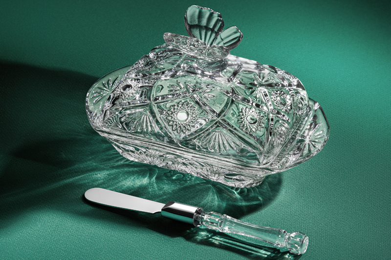 Масленка "Бабочка" 17,3х11х9,7 см с ножом в комплекте выполнена из прозрачного стекла. Высота сервировочной ёмкости без крышки – 3 см. Ручка на крышке выполнена в форме порхающей бабочки, что сделает подачу масла на стол эффектной и изящной. Ножик размером 15,5х1,5 см имеет стеклянное основание и металлическое лезвие. Идеально для завтраков и чаепитий! Можно использовать в роли сырницы или паштетницы. Маслёнка с декоративной фигуркой на крышке поможет отпраздновать Широкую Масленицу со вкусом! Масленица – это чудесный повод собраться за праздничным столом и насладиться тёплой атмосферой и традиционной русской кухней. В ассортименте бренда Elan Gallery вы найдёте предметы декора и красивую посуду для приготовления и сервировки масленичных блюд. Пусть Масленичная неделя принесет вам радость и множество вкусных моментов! При хранении в холодильнике сливочное масло не будет впитывать запахи других продуктов благодаря стеклянной крышке. Можно использовать в роли контейнера для кусочков сыра или паштета. Не рекомендуется применять абразивные моющие средства. Без ножа контейнер можно мыть в посудомоечной машине. Набор нельзя использовать в микроволновой печи. Поставляется в стильной коробке. Станет чудесным подарком на любой праздник. Благодаря красочной коробочке не понадобится подарочная упаковка. В ассортименте бренда Элан Галерея вы найдёте много красивых товаров для дома, оригинальной посуды и кухонных принадлежностей.