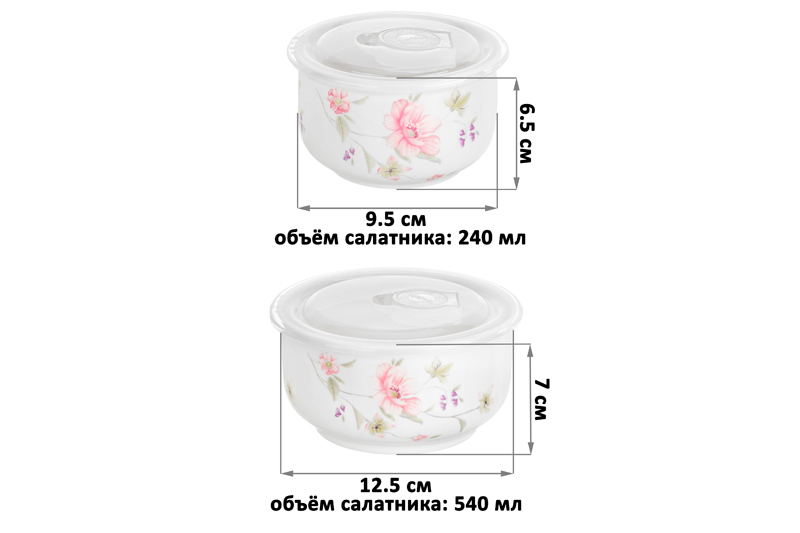 БЫЛО 896 руб! Набор 2 салатников 540 мл 12,5*12,5*7 см + 240 мл 9,5*9,5*6,5 см "Диана" с плас.крышкой
