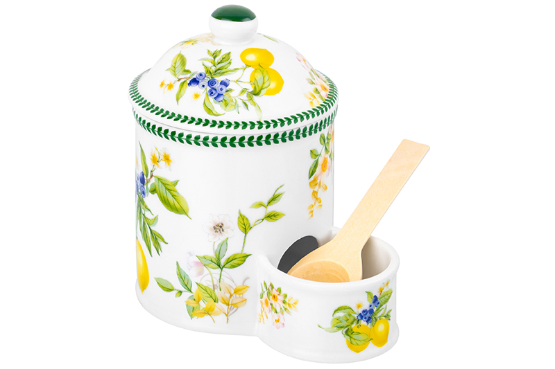 БЫЛО 904 руб! Банка д/соли 12,5*8,5*12,5 см 350 мл "Лимоны" с крышкой + деревянная ложка, NEW BONE CHINA