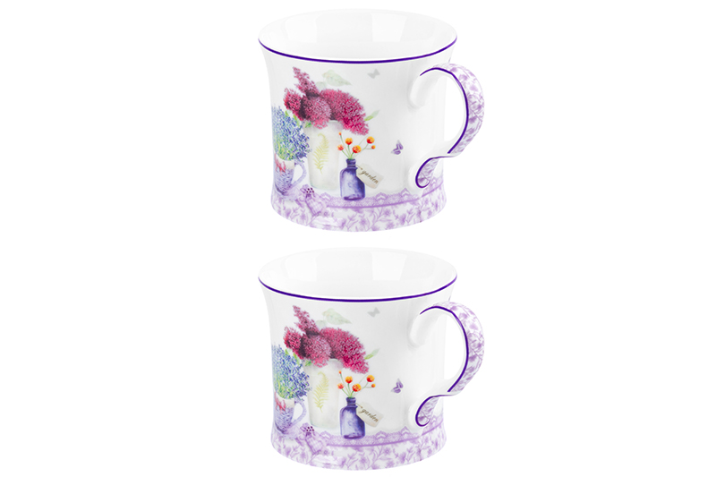 БЫЛО 910 руб! Набор 2 кружек 250 мл 11,5*8,5*7,7 см "Лаванда", NEW BONE CHINA