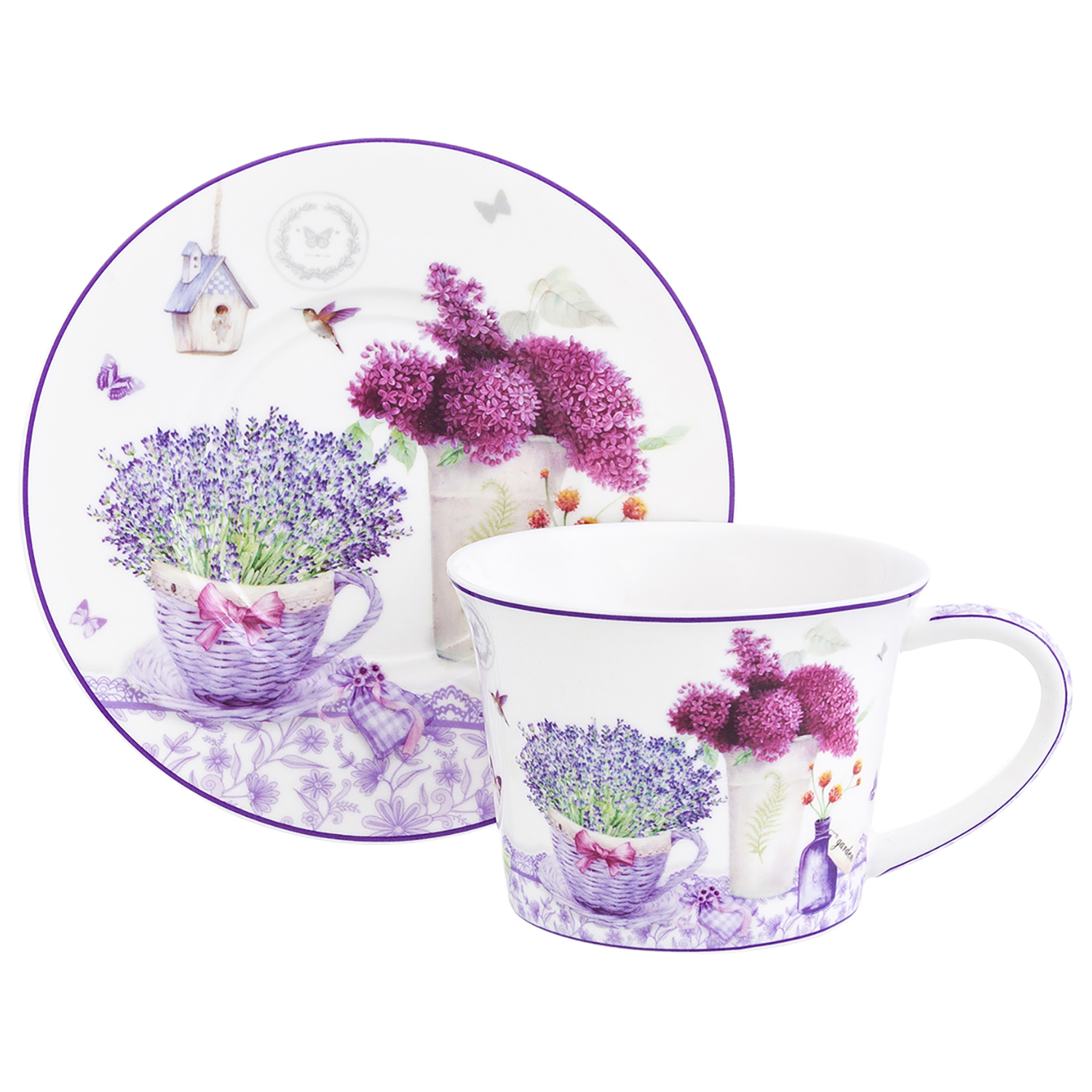 БЫЛО 913 руб! Чайная пара 2 пр. 250 мл 12,5*9,5*7 см "Лаванда" NEW BONE CHINA