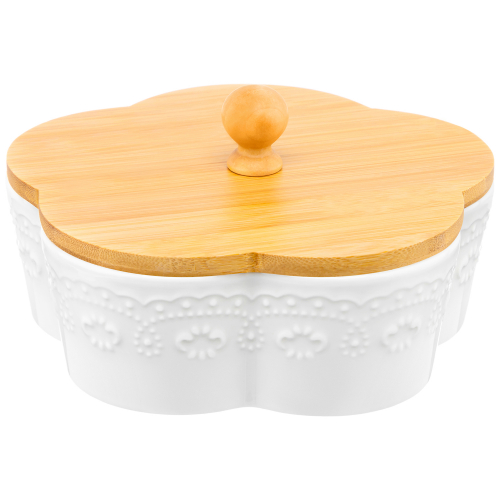 БЫЛО 944 руб!Набор 3 банок д/хранения 250 мл 9,3*9,3*7 см "Микс" + дер.крыш-подст. с сил/упл. белый