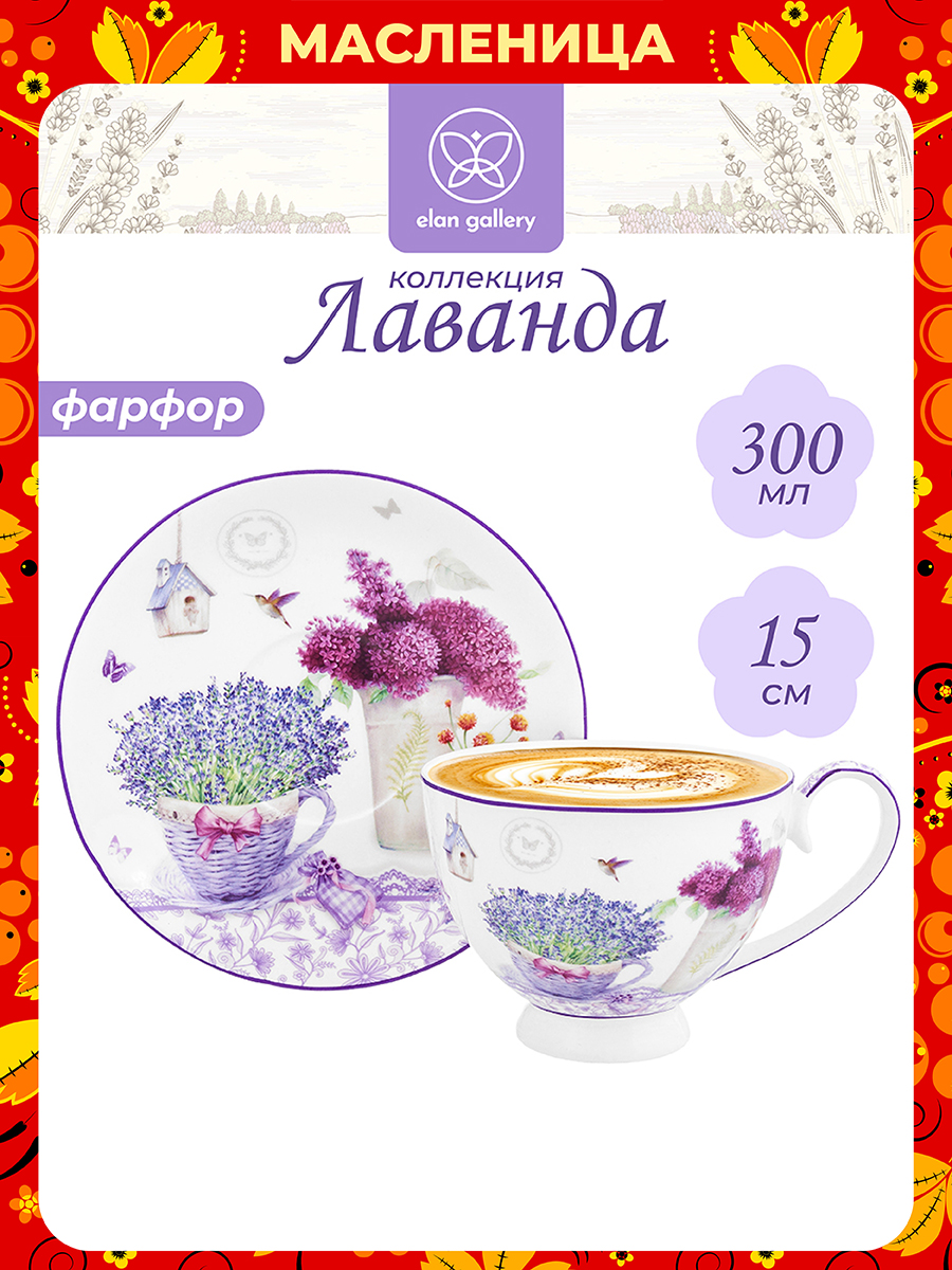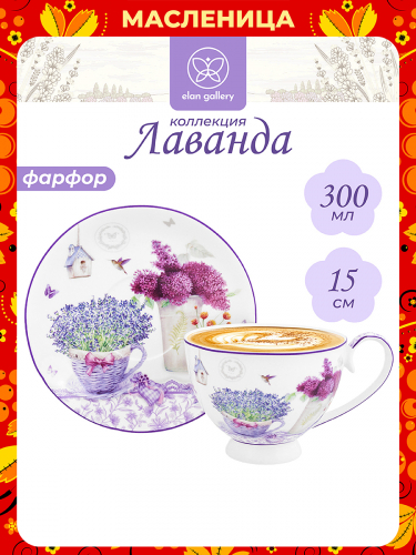 Чайная пара Elan Gallery "Лаванда" выполнена из фарфора нового поколения new bone china. New bone china сочетает в себе изящность и высокую прочность. От классического костяного фарфора материал отличается большей экологичностью в производстве. Объём чашки – 300 мл, размер 12,5х9,5х7 см. Размер блюдца – 15х15х2 см. Чашка на ножке и блюдечко круглой формы имеют фиолетовую кайму. Набор поможет отпраздновать Широкую Масленицу со вкусом! Масленица – это чудесный повод собраться за праздничным столом и насладиться тёплой атмосферой и традиционной русской кухней. В ассортименте бренда Elan Gallery вы найдёте предметы декора и красивую посуду для приготовления и сервировки масленичных блюд. Пусть Масленичная неделя принесет вам радость и множество вкусных моментов! Серия "Лаванда" украшена нежным принтом на тему Прованса – французской провинции, которая славится своими лавандовыми полями и красивыми пейзажами. Изображение пышных букетов лаванды и гортензии позволит окунуться в атмосферу тепла, гармонии и южного солнца, не покидая вашей кухни или столовой! Кружка с блюдцем подходят ценителям чая и кофе, которые любят пить из красивой посуды. Чашка украсит ваш стол своим стильным дизайном как на праздник, так и в будни. Это идеальный вариант для того, чтобы согреться горячим чаем зимой и освежиться прохладным лимонадом летом. Используйте блюдце как подставку под чашку, чтобы порадовать гостей изящной сервировкой. Положите на блюдце кусочек торта, домашнего пирога или пирожное. Небольшая тарелочка подойдёт не только для десерта, но и закусок: сырной нарезки, колбасы или свежих овощей. Не рекомендуется применять абразивные моющие средства. Набор можно использовать в микроволновой печи и посудомоечной машине. Поставляется в красивой картонной коробке. Станет приятным подарком вашим близким на любой праздник. Благодаря стильной коробочке не понадобится подарочная упаковка. Чашка с десертным блюдцем станут украшением вашей кухни или приятным сюрпризом для близких!