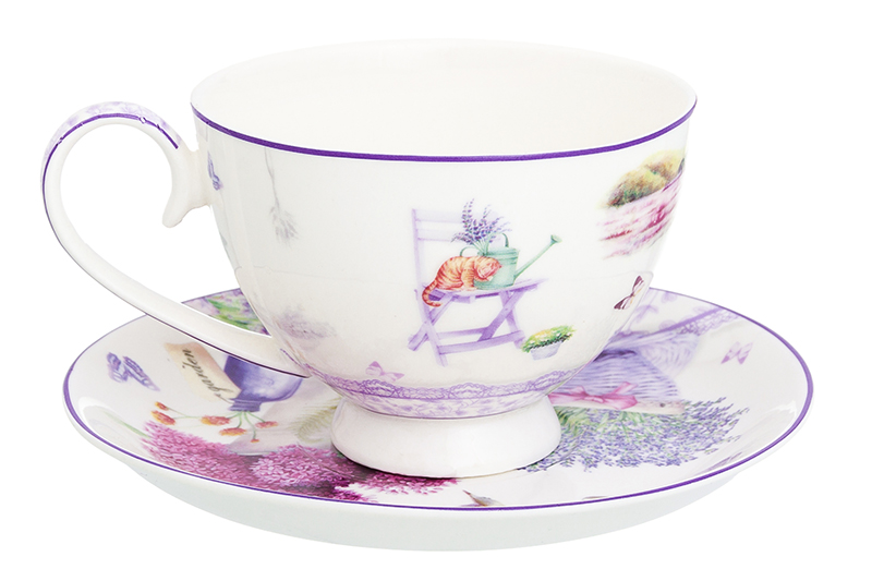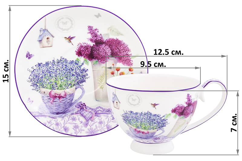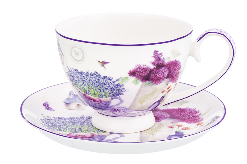 БЫЛО 964 руб! Чайная пара 2 пр. 300 мл 12,5*9,5*7 см "Лаванда" на ножке, NEW BONE CHINA