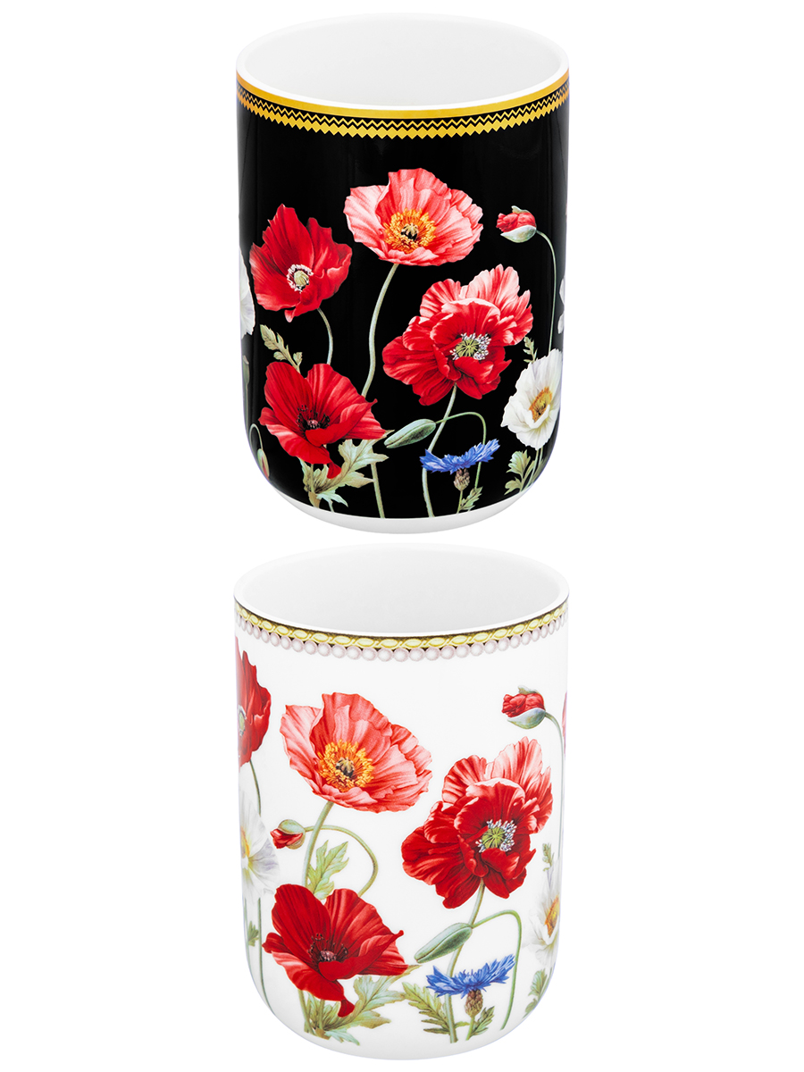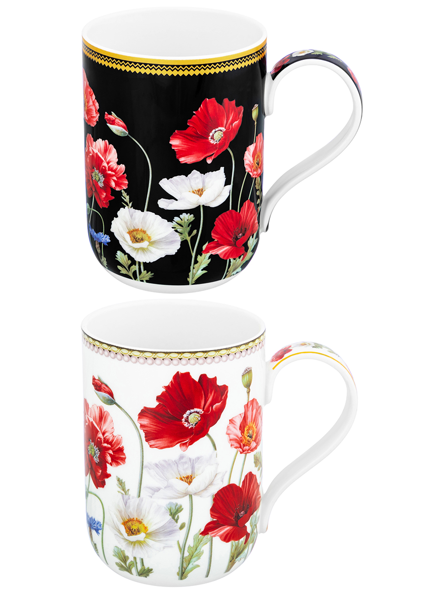 БЫЛО 968 руб! Набор кружек 2 пр. 400 мл 11,5*7,5*10,5 cм "Маки" + "Маки на черном"