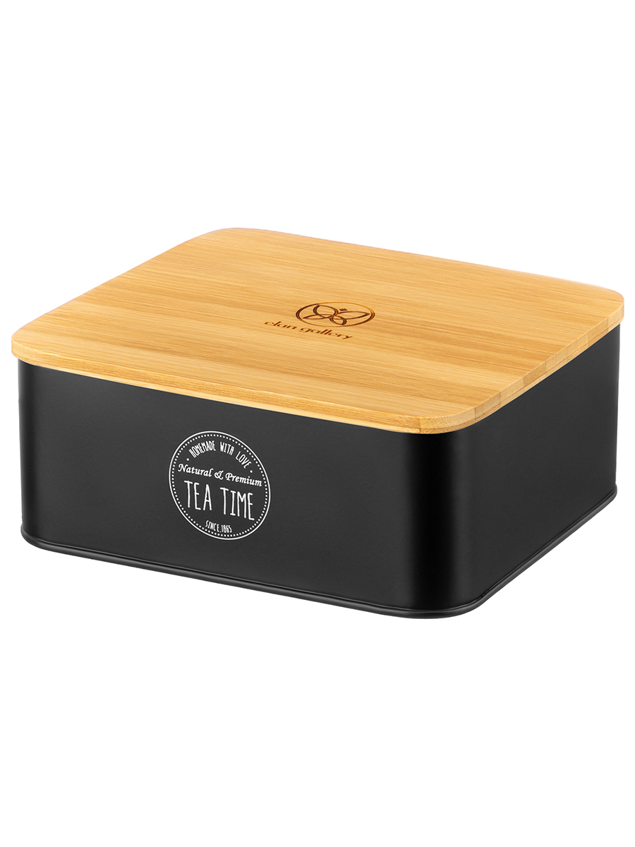 БЫЛО 982 руб! Органайзер для чайных пакетиков 18,5*16*8 см "TEA TIME" с бамбуковой крышкой, черный