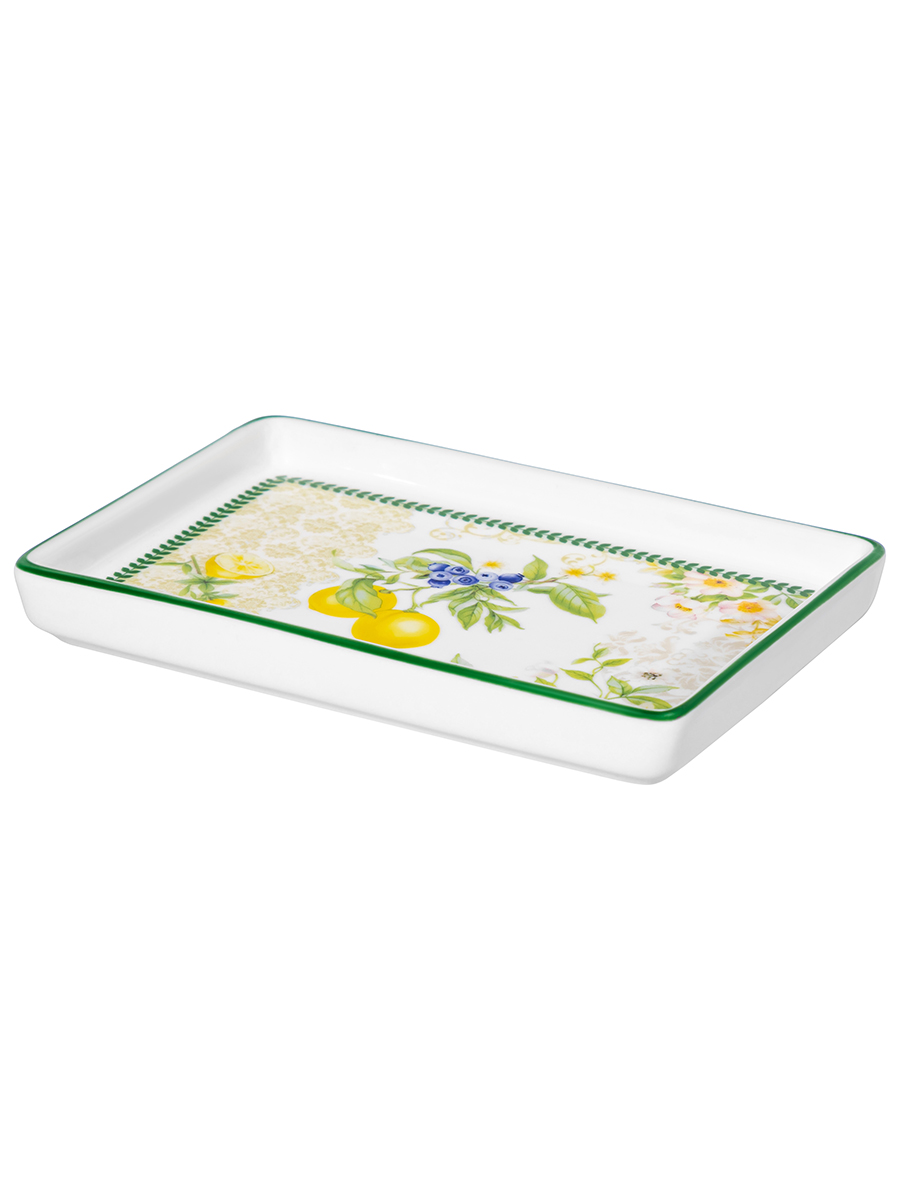 Маслёнка из серии «Лимоны» от Elan Gallery предназначена для хранения и сервировки сливочного масла. Размер изделия – 15,5х10,5х7,8 см. Внутренний размер под крышкой – 13х8 см, высота блюда без крышки – 2 см. Выполнена из фарфора нового поколения new bone china, сочетающего в себе изящность и высокую прочность. За счёт гладкости изделия легко отмываются, поэтому сохраняют привлекательный внешний вид и практичны в использовании. Плотная структура материала позволяет посуде дольше сохранять температуру блюд и напитков. От других видов костяного фарфора new bone china отличается большей экологичностью в производстве. Серия украшена ярким рисунком лимонов. Используйте маслёнку для подачи масла, сыра и лимонов, а также хранения этих продуктов в холодильнике. Ёмкость выступит в качестве небольшой конфетницы для разнообразных сладостей: зефира, безе, леденцов и мармелада. Крышка с удобной ручкой придаст эффектность любой подаче, а благодаря красивому рисунку на блюдце вы можете использовать его отдельно. Не рекомендуется применять абразивные моющие средства. Подходит для использования в посудомоечной машине и микроволновой печи. Поставляется в дизайнерской картонной коробке – благодаря ей вам не потребуется дополнительная подарочная упаковка. Серия «Лимоны» от бренда Элан Галерея станет украшением любого кухонного инвентаря и позволит собрать красивый сервиз в едином стиле!