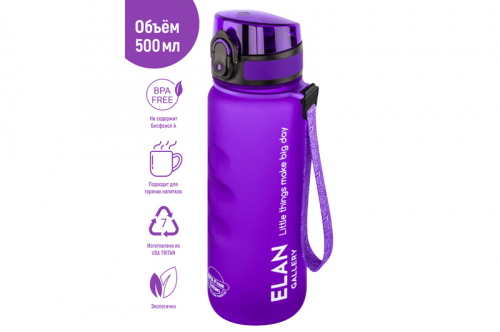Бутылка для воды «Style Matte» от Elan Gallery – это практичное и стильное решение для ценителей активного образа жизни. Размер ёмкости – 6,5х6,5х23 см. Высота до крышки – 19 см. Объём – 500 мл. Изделие выполнено из тритана – прочного, безопасного материала, не содержащего бисфенол А. Этот пластик не впитывает запахи и не влияет на вкус напитков. Бутылочка подходит как для холодной, так и для горячей жидкости. Освежитесь любимыми летними напитками в жару или согрейтесь ароматным чаем зимой! Матовое покрытие и углубления для пальцев обеспечивают комфортное использование на прогулке, в офисе и на тренировке в зале. Надёжная крышка с герметичным клапаном препятствует проливанию, а встроенное ситечко позволит заваривать напитки с травами и фруктами. С удобным ремешком бутылку можно закрепить на рюкзаке или запястье – это позволяет брать её в путешествия, поездку на велосипеде или автомобиле. Многоразовая дорожная бутылка подходит как для туризма, так и для пикника на природе. Удобная форма делает её не только туристическим, но и спортивным инвентарём. Пластиковая ёмкость для питья – прекрасный вариант для занятий фитнесом, йогой или бегом в спортзале или на свежем воздухе. Она также дополнит занятия велоспортом в качестве велосипедного аксессуара. Это надёжный помощник спортсменам во время игры в футбол или волейбол, занятий гимнастикой и танцами. Подходит как для взрослых, так и для школьников – её можно взять в школу и на занятия физкультурой. Благодаря универсальному дизайну и цвету лаванда она подойдёт как девочкам, так и мальчикам в качестве школьного аксессуара. Функциональная бутылка в дизайнерской картонной упаковке – это готовый подарок для женщин и мужчин. Не подходит для микроволновой печи, посудомоечной машины и стерилизатора. В коллекции бренда Элан Галерея представлена разнообразная посуда и товары для дома на любой вкус. Спортивные аксессуары из серии «Style Matte» помогут следить за водным балансом, где бы вы ни находились!