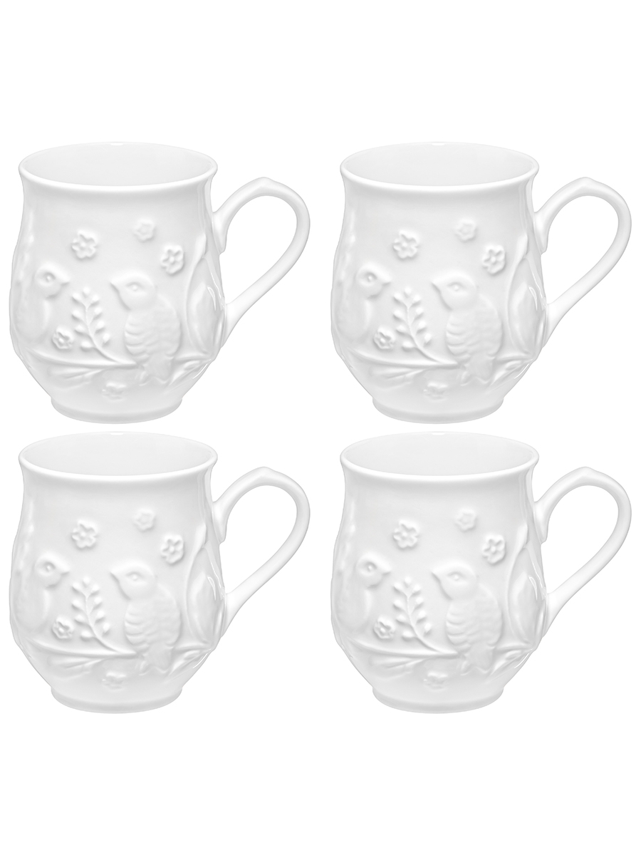 БЫЛО 992 руб! Набор 4 кружек 350 мл 11,5*9*9,5 см "Птички на ветке", фарфор