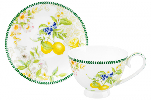 Чашка 250 мл с блюдцем для десерта 20*10*2 см "Поцелуй на черном", NEW BONE CHINA