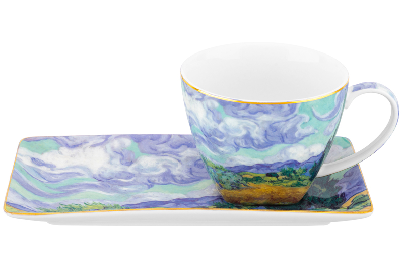Чашка 250 мл с блюдцем для десерта 20*10*2 см "Пшеничное поле с кипарисами" NEW BONE CHINA