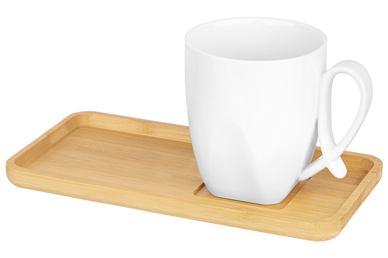 Чашка 300 мл 11*8,3*9,5 см "Айсберг" с бамбуковым блюдцем для десерта 21*10,5*1,5 см