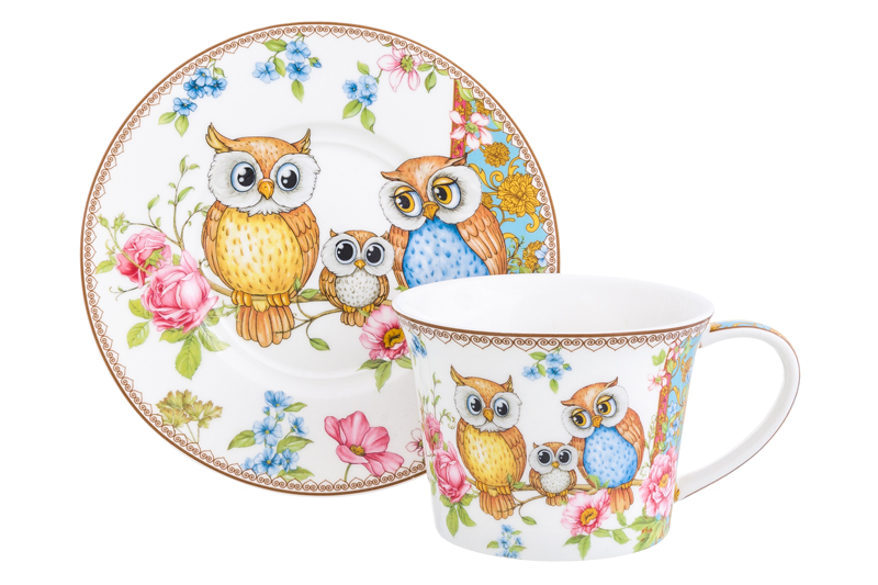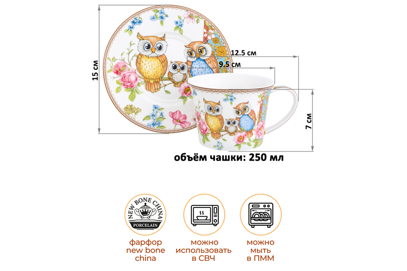 Чайн. пара 2 пр. 250 мл 12,5*9,5*7 см "Совушки" NEW BONE CHINA